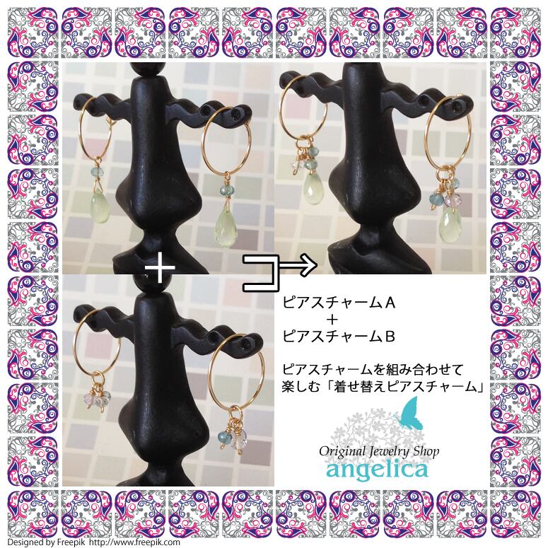 着脱可能なピアス・イヤリング金具で着せ替えをお楽しみください。
